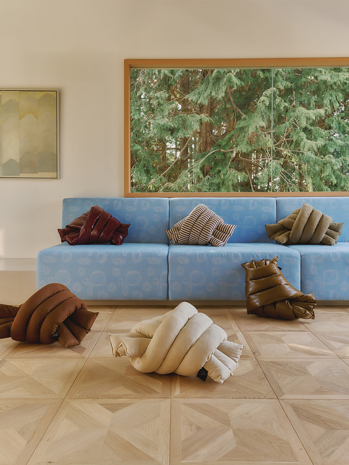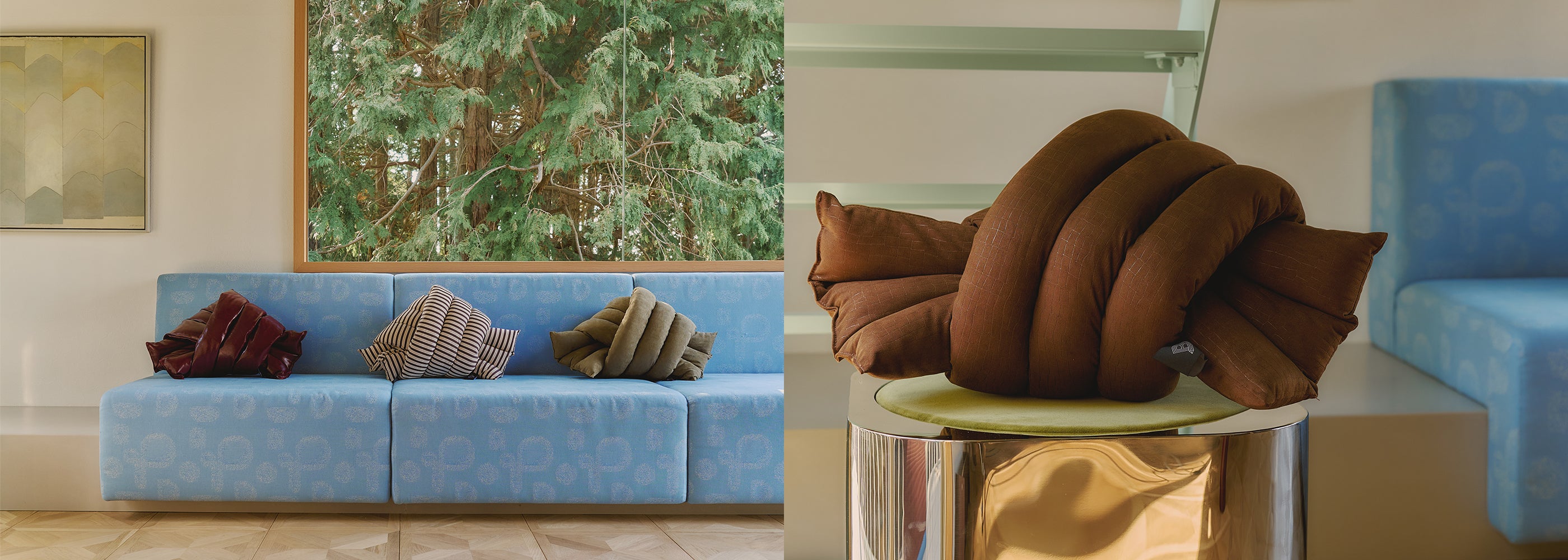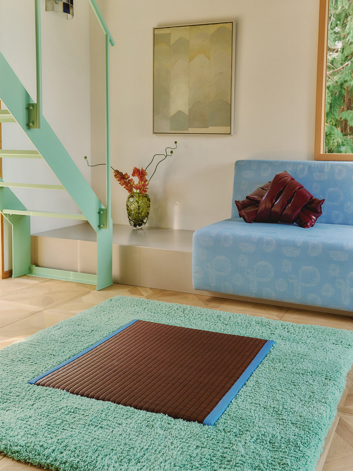 Keisuke Shoda—an inspiring art director/graphic designer whose work is seen not only in Japan but all around the world—has founded STUDIO THE BLUE BOY. Since little, he has been interested in art and expressing his creativity on canvas. The art-rugs are his drawings morphing into a real life object—They are born from the extent of his representations that render architectures, interior designs, furniture, and sceneries that he has encountered in his journeys. Shoda is deft at transforming his designs into exquisite shapes, and highly perceptive of selecting exceptional materials and defining superlative manufacturing processes. Each rug is meticulously handmade by the textile craftsman in Kyoto, and every intricate task, from dying to weaving, is done in one studio. The abstract style, texture, and pleasant feel of the rug—The wonderfully quirky shaped creation gives visual joy, and a subtle romantic escape from an ordinary life.